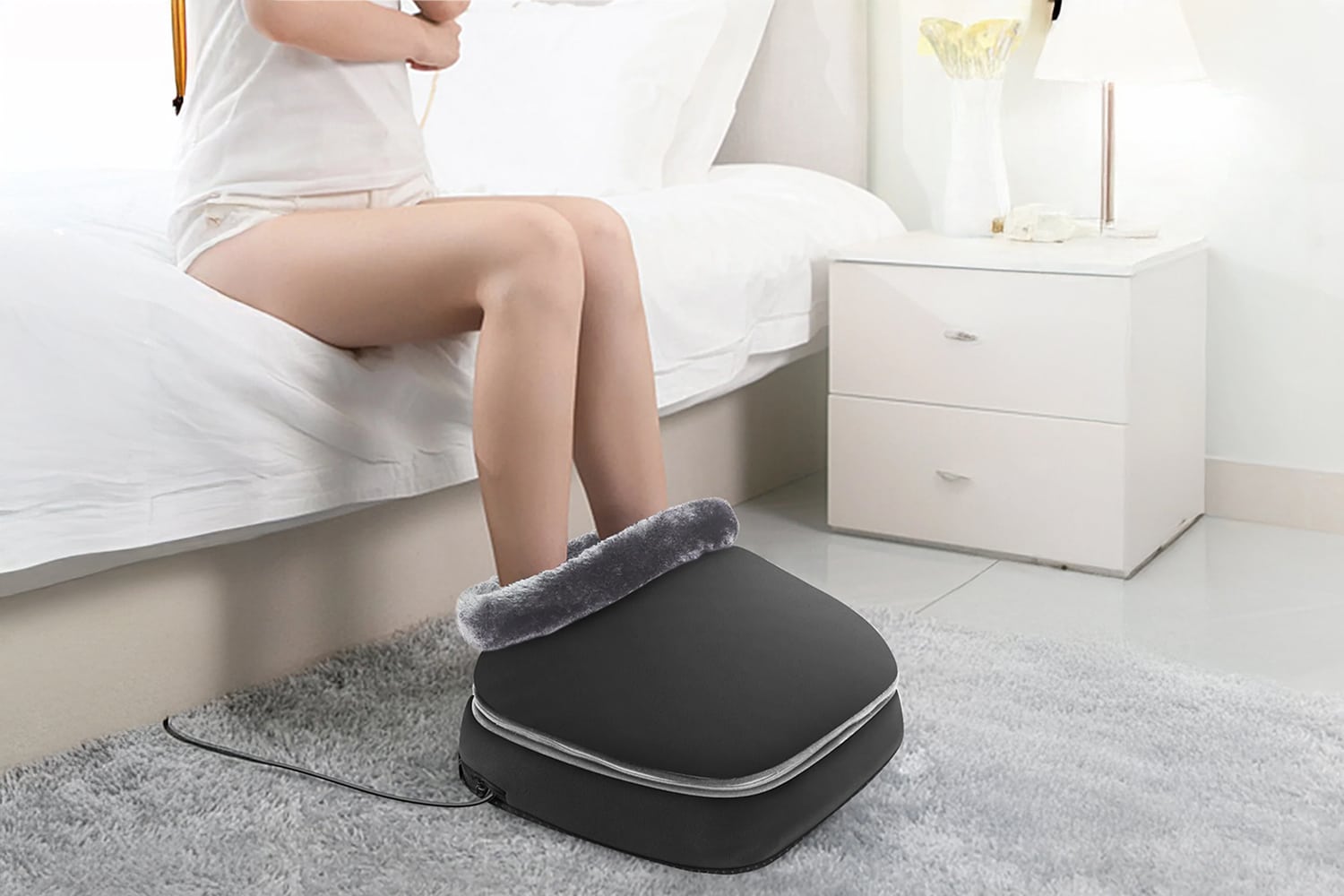 This massager incorporates 90 acupuncture points in its massage system to enhance overall well-being and relieve muscle tension effectively. The 3-in-1 functionality combines shiatsu, kneading, and air compression techniques to soothe tired feet after long days. The warmth feature maintains cozy temperatures during sessions.