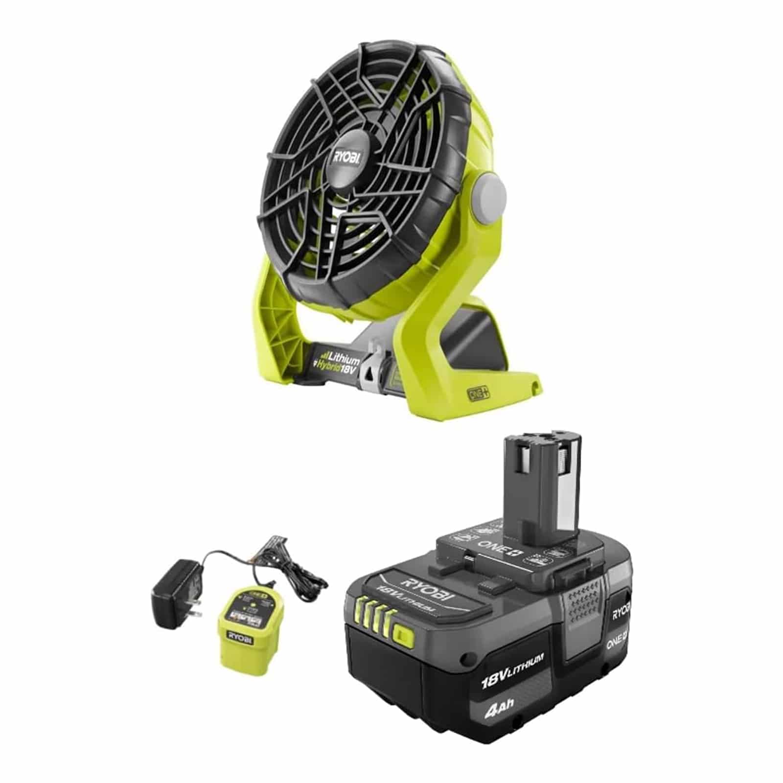 The RYOBI Camping Fan is a hybrid model that runs on either an 18V battery or an extension cord. Its compact design with an integrated handle maximizes portability, ideal for travel or power outages. The 4.0 Ah battery offers reliable runtime, though not as long as higher-capacity competitors.